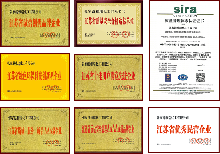 张家港雅瑞化工有限公司于2012年正式成立,以磷酸酯阻燃剂和聚氨酯固化扩链剂出口为主导,国内销售为辅,与国内外有名公司BASF、BAYER、LANXESS、UNIVAR、日本大八、东棉化学、中核集团、中石油、中海油、中石化等公司均建立了良好的合作关系.公司拥有自营进出口权,2014年通过了ISO-9001-质量管理体系认证,携手众多国内外销售精英,共同开发海外磷酸酯阻燃剂和固化扩链剂市场,为扩大化工海外市场坚持不懈地做着长期的努力.从刚成立起海外客户的"无”到几年发展积累下来的欧美、东亚、东南亚海外客户不断增多。