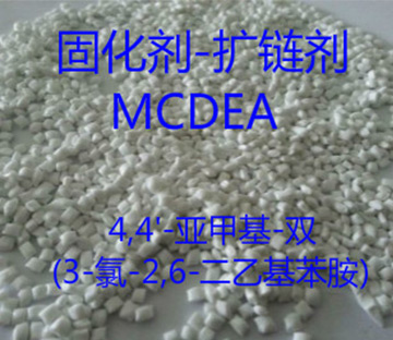 欢迎万彩网100 4,4'-亚甲基-双(3-氯-2,6-二乙基苯胺),MCDEA与TDI预聚体有着良好地相容、配伍性,所制备的PU制品具有优良的物理以及动态力学性能,在PU的浇注、喷涂、RIM等工艺技术方法都可使用;在PU的弹性体、微孔制品、胶粘剂、涂层剂等制品制备中,都有着广泛地应用,也可以用作环氧树脂的固化剂以及供制备聚酰亚胺等所用.它与相应的 MOCA、740M等混合使用,可以使PU弹性体性能得以提高,体现了良好地叠加作用。