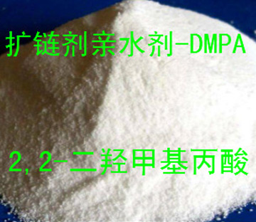 2,2-二羟甲基丙酸(扩链剂亲水剂DMPA)是一种无味在水性聚氨酯制造中既是扩链剂,又能使聚氨酯获得自乳化性能,可制成稳定性优良的自乳化性水性聚氨酯;还用于制备聚氨酯水乳液型皮革涂饰剂,是传统的水乳性聚丙烯酸酯皮革涂饰剂的升级换代产品;用作改进聚酯树脂的添加剤;用作制造光敏树脂和液晶的原料;用于环氧酯涂料、聚氨酯弹性体及粉末涂料;用于制造磁性记录材料及其粘合剂,以生产录音磁带、录像磁带、计算机磁带、数据记录磁带和磁